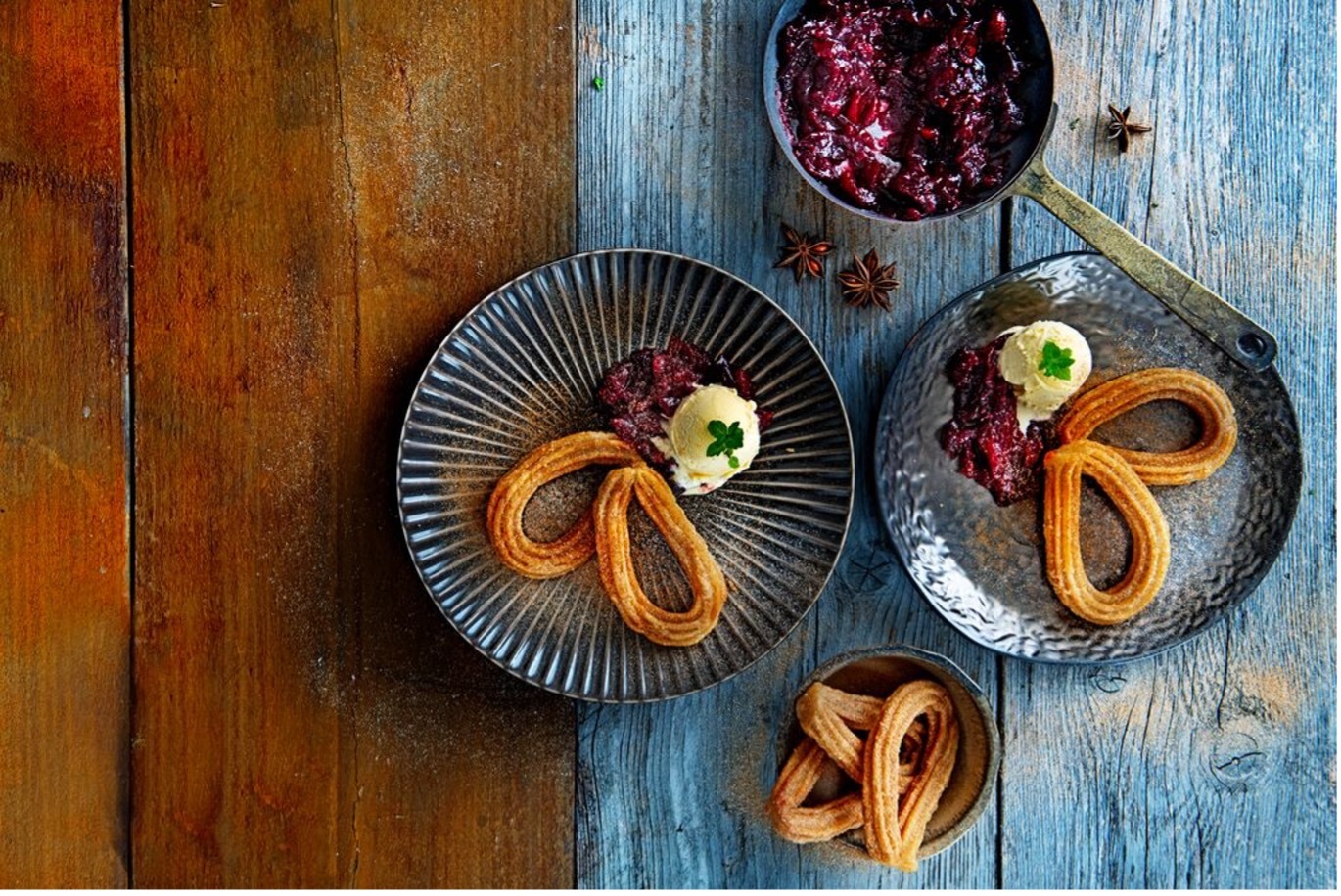 💜 BONUS: Churros z pieczonymi śliwkami, miodem i kardamonem